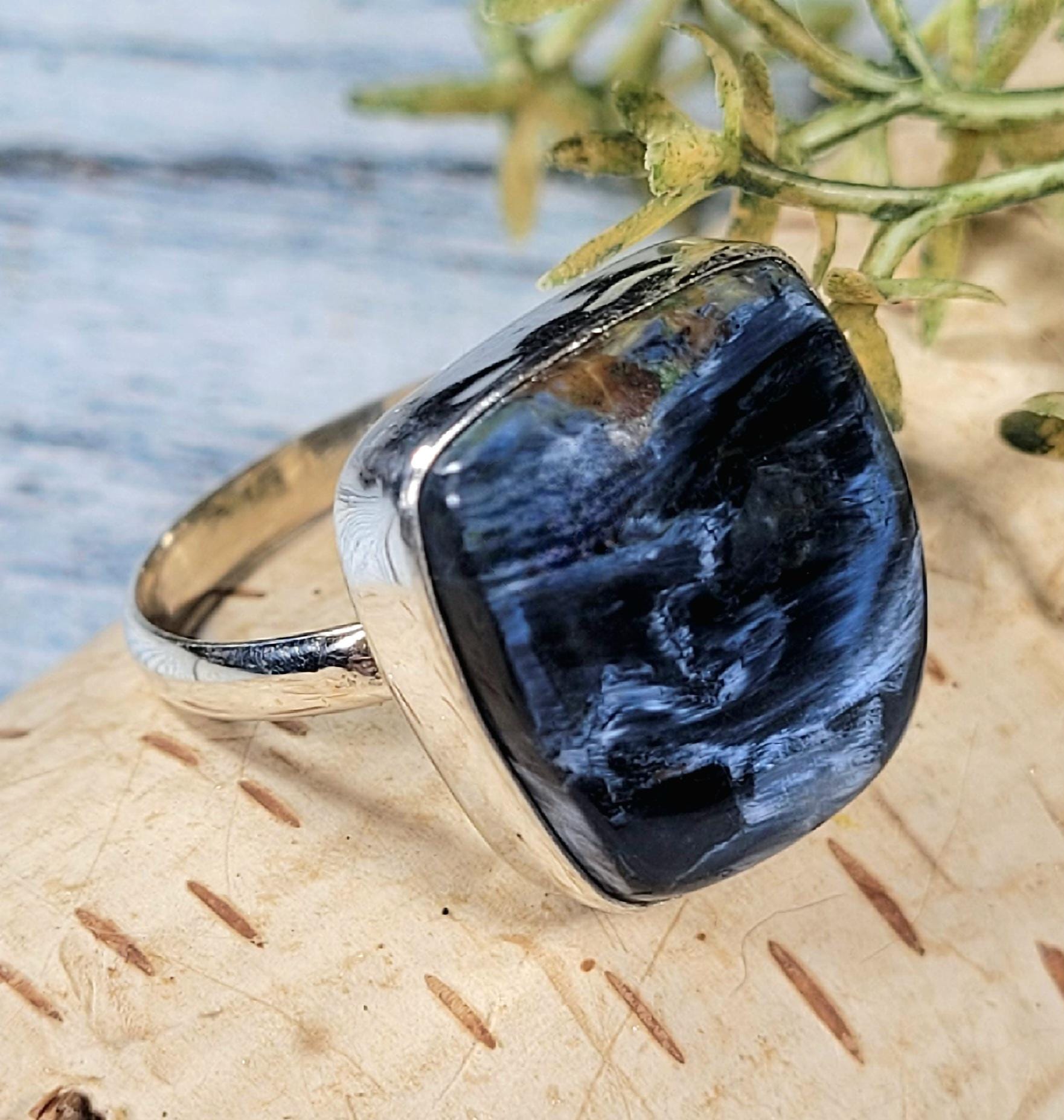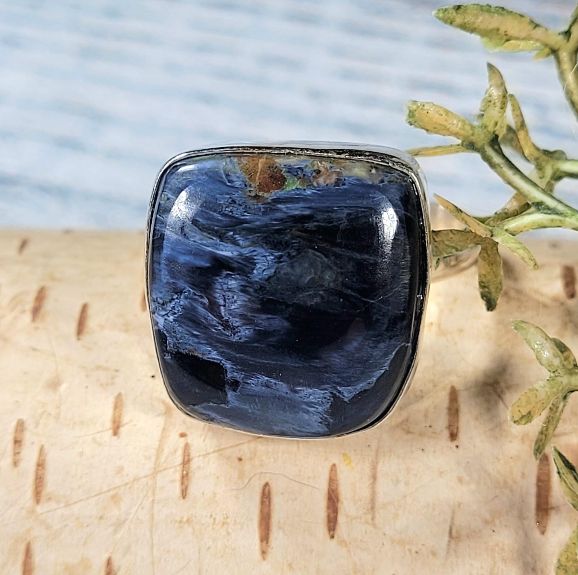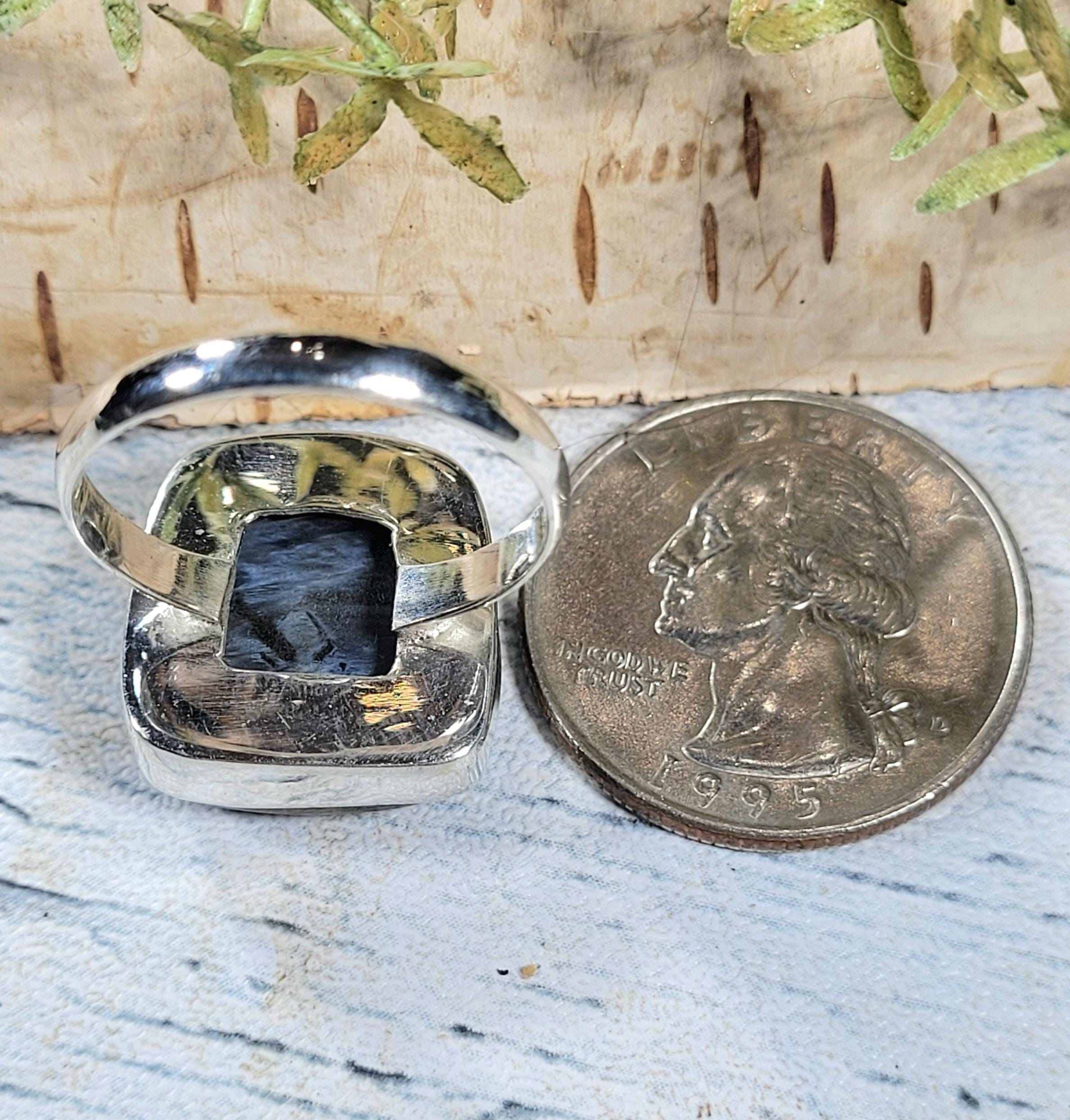 Natural High Grade Pietersite Cushion Cabochon .925 Sterling Silver Ring measures 5/8" x 5/8" and weighs 6.3 grams JV15. Solid Sterling Silver Ring Size 9.25. Our items are hand picked one of a kind, so if you see one you like, it is the only one like that. If you're not pleased with the item you receive, please email us before leaving review. We stand behind our jewelry 100% and will refund you or send a replacement to make sure you're happy with your purchase!! This is a handpicked natural stone, the exact one shown in picture. The sterling silver is .925 and stamped. Each piece is handmade by artisans in my shop. The quality of the stones and the silver craftmanship is impressive. Please look at other items in my store. I sell ready made jewelry with handcrafted silver work, pendants with a sterling silver bails and beautiful unique stones for jewelry wire wrapping and weaving. You will pay exact amount on shipping plus $1 for supplies and labor. All items are shipped within a couple of days after payment and are shipped USPS first class or international first class. Items are available for combined shipping, if invoice does not combine please email me and I will combine for you. Average shipping will be $4 to 4.50 for USPS first class. International shipping is available for exact amount of shipping plus $1 for labor and supplies also. We also accept returns for refund or exchange. Thanks for viewing my store.