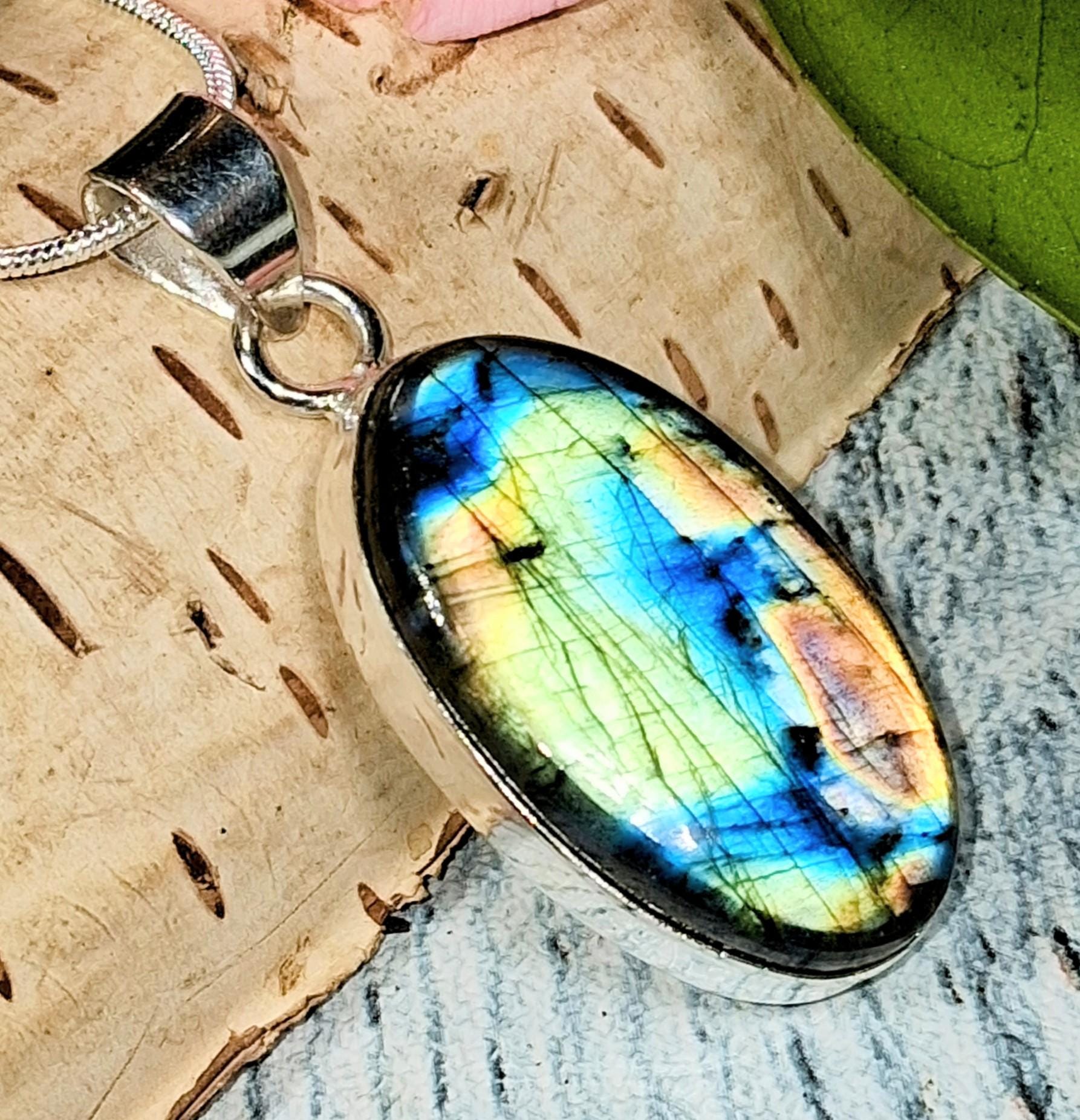 Natural Handmade AAA Grade Multi Color Flash Labradorite.925 Sterling Silver Pendant 1 3/4" x 11/16" 8.8 Grams KB09 . This is a handpicked natural stone, the exact one shown in picture. The sterling silver is .925 and stamped. Each piece is handmade by artisans in my shop. The quality of the stones and the silver workmanship is impressive. Please look at other items in my store. I sell ready made jewelry with hand crafted silver work, pendants with a sterling silver bails and beautiful unique stones for jewelry wire wrapping and weaving. You will pay exact amount on shipping plus $1 for supplies and labor. All items are shipped within a couple of days after payment and are shipped USPS first class or international first class. Items are available for combined shipping, if invoice does not combine please email me and I will combine for you. Average shipping will be $4 to 4.50 for USPS first class. International shipping is available for exact amount of shipping plus $1 for labor and supplies also. We also accept returns for refund or exchange. Thanks for viewing my store