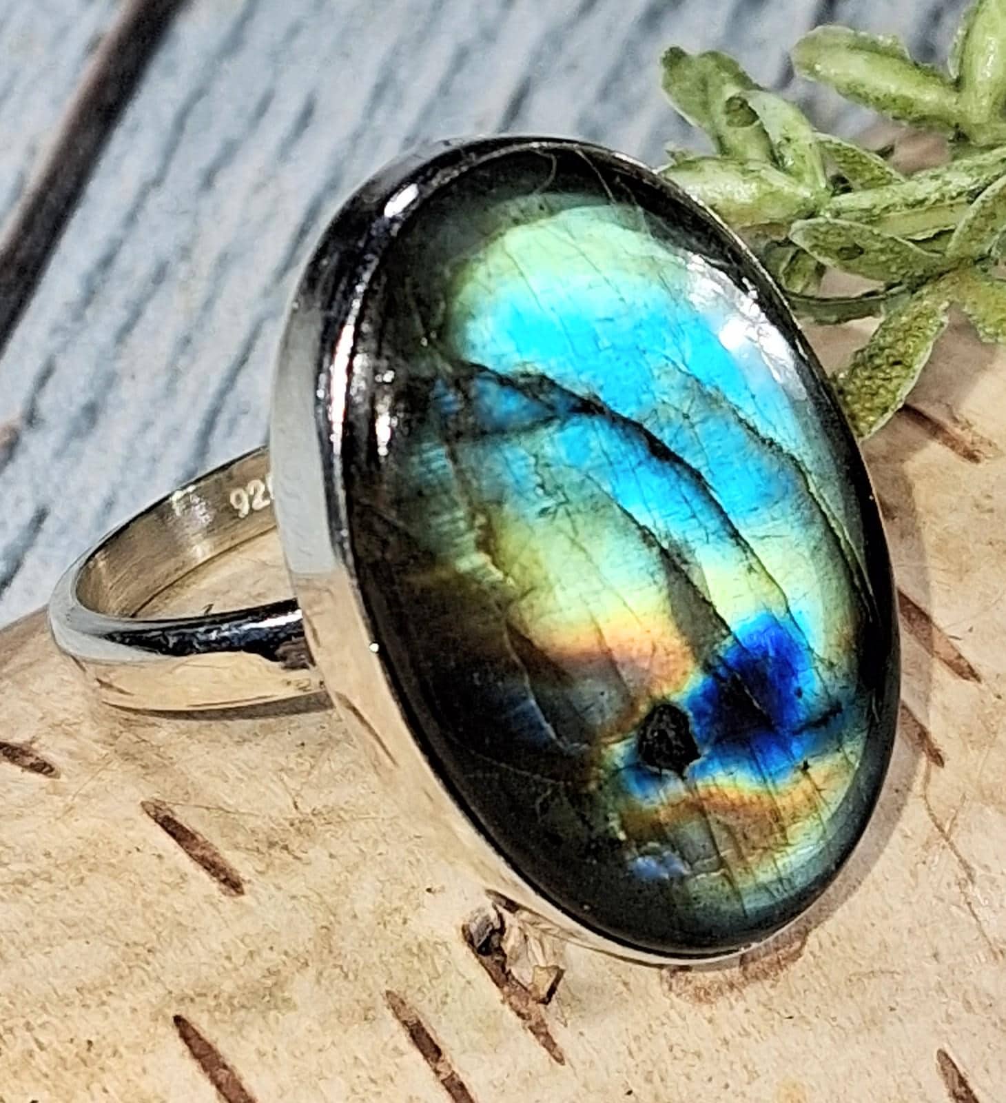 Natural AAA Grade Multi Flash Oval Labradorite Handmade .925 Sterling Silver Ring Size 8.75 6.7 Grams 1" x 11/16" KB13. This is a handpicked natural stone, the exact one shown in picture. The sterling silver is .925 and stamped. Each piece is hand made by artisans in my shop. The quality of the stones and the silver workmanship is impressive. Please look at other items in my store. I sell ready made jewelry with hand crafted silver work, pendants with a sterling silver bails and beautiful unique cabochons for jewelry wire wrapping and weaving. You will pay exact amount on shipping plus $1 for supplies and labor. All items are shipped within a couple of days after payment and are shipped USPS first class or international first class. Items are available for combined shipping, if invoice does not combine please email me and I will combine for you. Average shipping will be $4 to 4.50 for USPS first class. International shipping is available for exact amount of shipping plus $1 for labor and supplies also. We also accept returns for refund or exchange. Thanks for viewing my store
