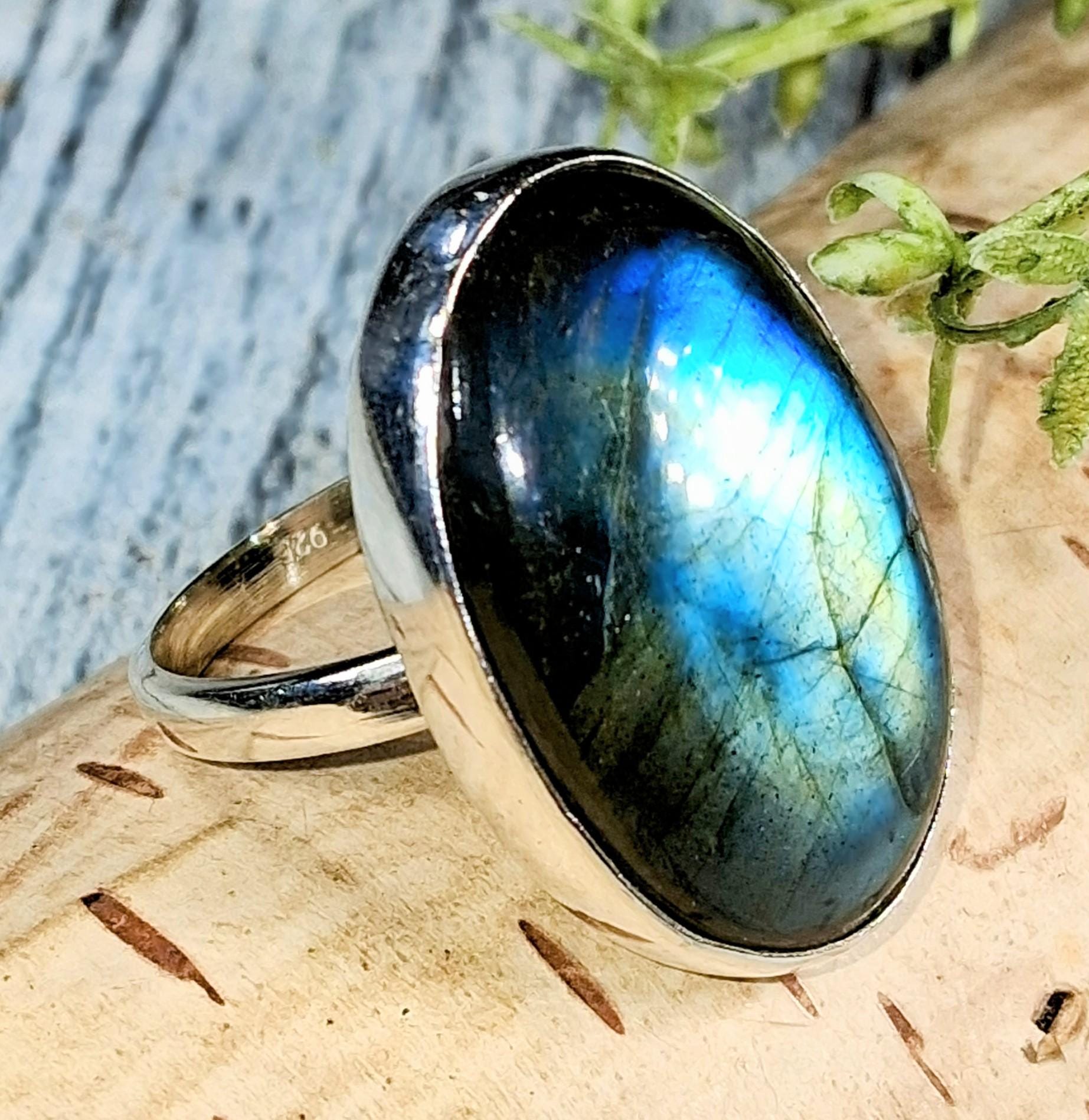 Natural AAA Grade Multi Flash Oval Labradorite Handmade .925 Sterling Silver Ring Size 9 weighs 8.2 Grams and face measures 1" x 11/16" KB14. This is a handpicked natural stone, the exact one shown in picture. The sterling silver is .925 and stamped. Each piece is hand made by artisans in my shop. The quality of the stones and the silver workmanship is impressive. Please look at other items in my store. I sell ready made jewelry with hand crafted silver work, pendants with a sterling silver bails and beautiful unique cabochons for jewelry wire wrapping and weaving. You will pay exact amount on shipping plus $1 for supplies and labor. All items are shipped within a couple of days after payment and are shipped USPS first class or international first class. Items are available for combined shipping, if invoice does not combine please email me and I will combine for you. Average shipping will be $4 to 4.50 for USPS first class. International shipping is available for exact amount of shipping plus $1 for labor and supplies also. We also accept returns for refund or exchange. Thanks for viewing my store