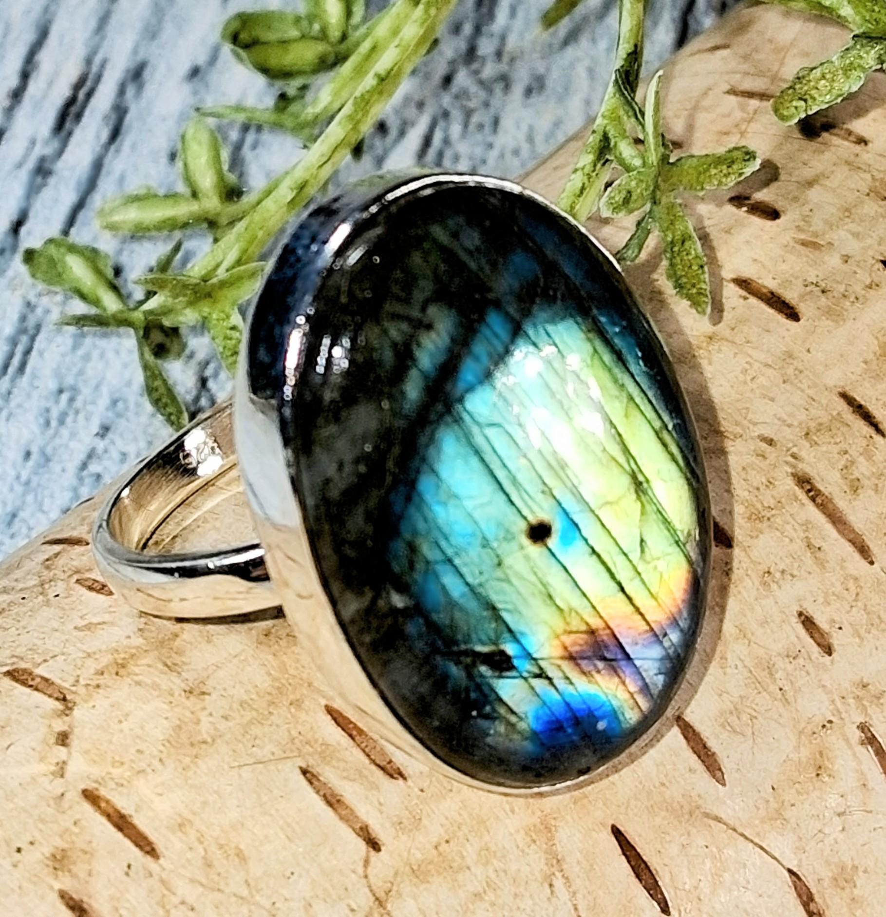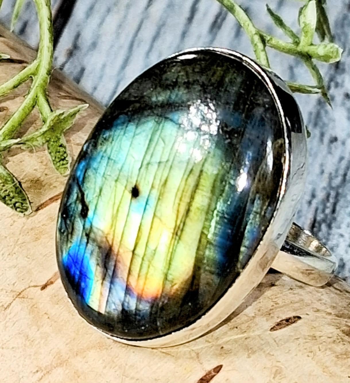 Natural High Grade Multi Flash Oval Labradorite Handmade .925 Sterling Silver Ring Size 8 weighs 8.2 Grams and face measures 1" x 3/4" KB18. This is a handpicked natural stone, the exact one shown in picture. The sterling silver is .925 and stamped. Each piece is hand made by artisans in my shop. The quality of the stones and the silver workmanship is impressive. Please look at other items in my store. I sell ready made jewelry with hand crafted silver work, pendants with a sterling silver bails and beautiful unique cabochons for jewelry wire wrapping Hand weaving. You will pay exact amount on shipping plus $1 for supplies and labor. All items are shipped within a couple of days after payment and are shipped USPS first class or international first class. Items are available for combined shipping, if invoice does not combine please email me and I will combine for you. Average shipping will be $4 to 4.50 for USPS first class. International shipping is available for exact amount of shipping plus $1 for labor and supplies also. We also accept returns for refund or exchange. Thanks for viewing my store