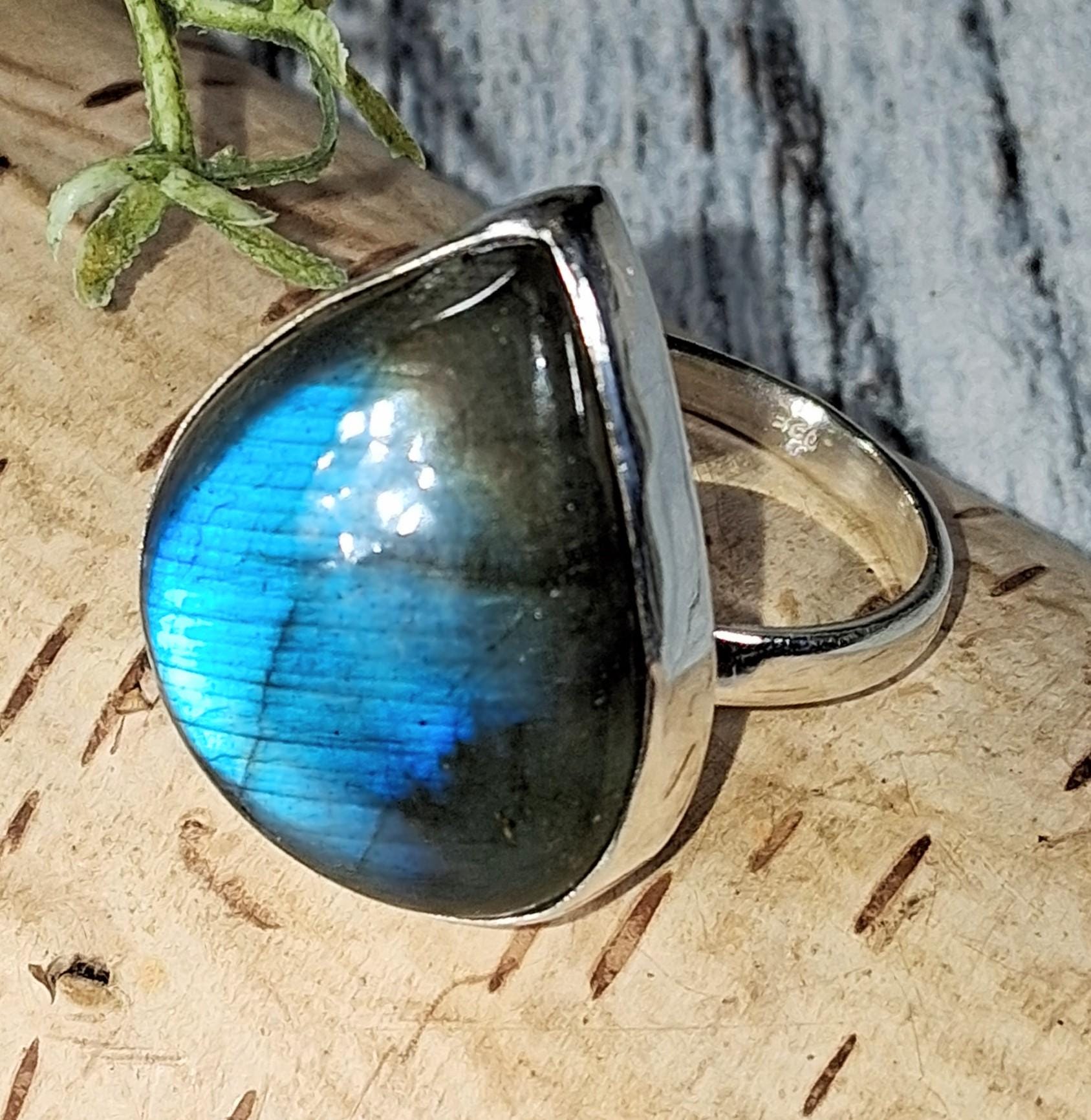 Natural AAA Grade Blue & Multi Flash Pear Labradorite Handmade .925 Sterling Silver Ring Size 9 weighs 7.4 grams and face measures 15/16" x 3/4" KB16. This is a handpicked natural stone, the exact one shown in picture. The sterling silver is .925 and stamped. Each piece is hand made by artisans in my shop. The quality of the stones and the silver workmanship is impressive. Please look at other items in my store. I sell ready made jewelry with hand crafted silver work, pendants with a sterling silver bails and beautiful unique cabochons for jewelry wire wrapping and weaving. You will pay exact amount on shipping plus $1 for supplies and labor. All items are shipped within a couple of days after payment and are shipped USPS first class or international first class. Items are available for combined shipping, if invoice does not combine please email me and I will combine for you. Average shipping will be $4 to 4.50 for USPS first class. International shipping is available for exact amount of shipping plus $1 for labor and supplies also. We also accept returns for refund or exchange. Thanks for viewing my store