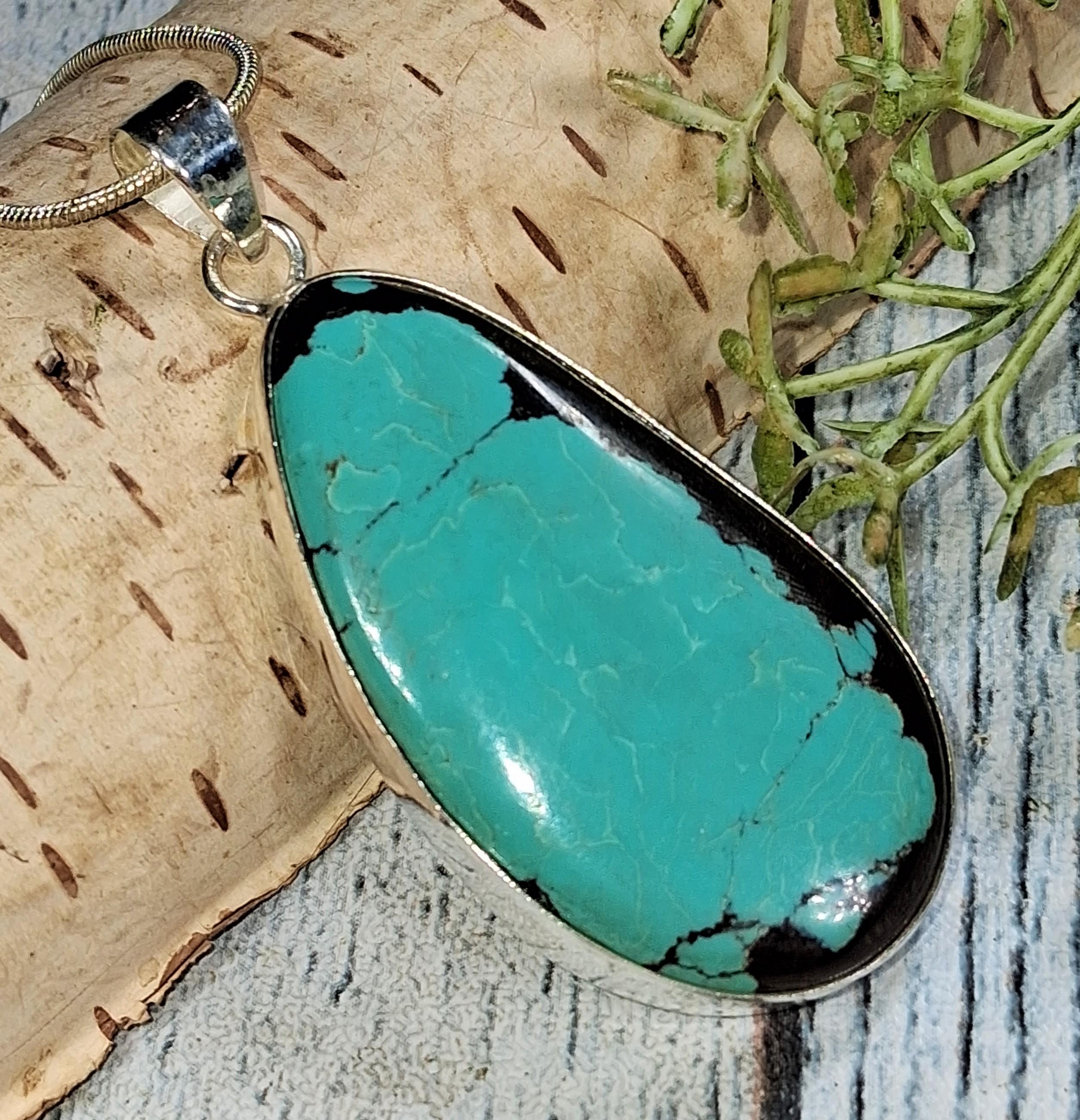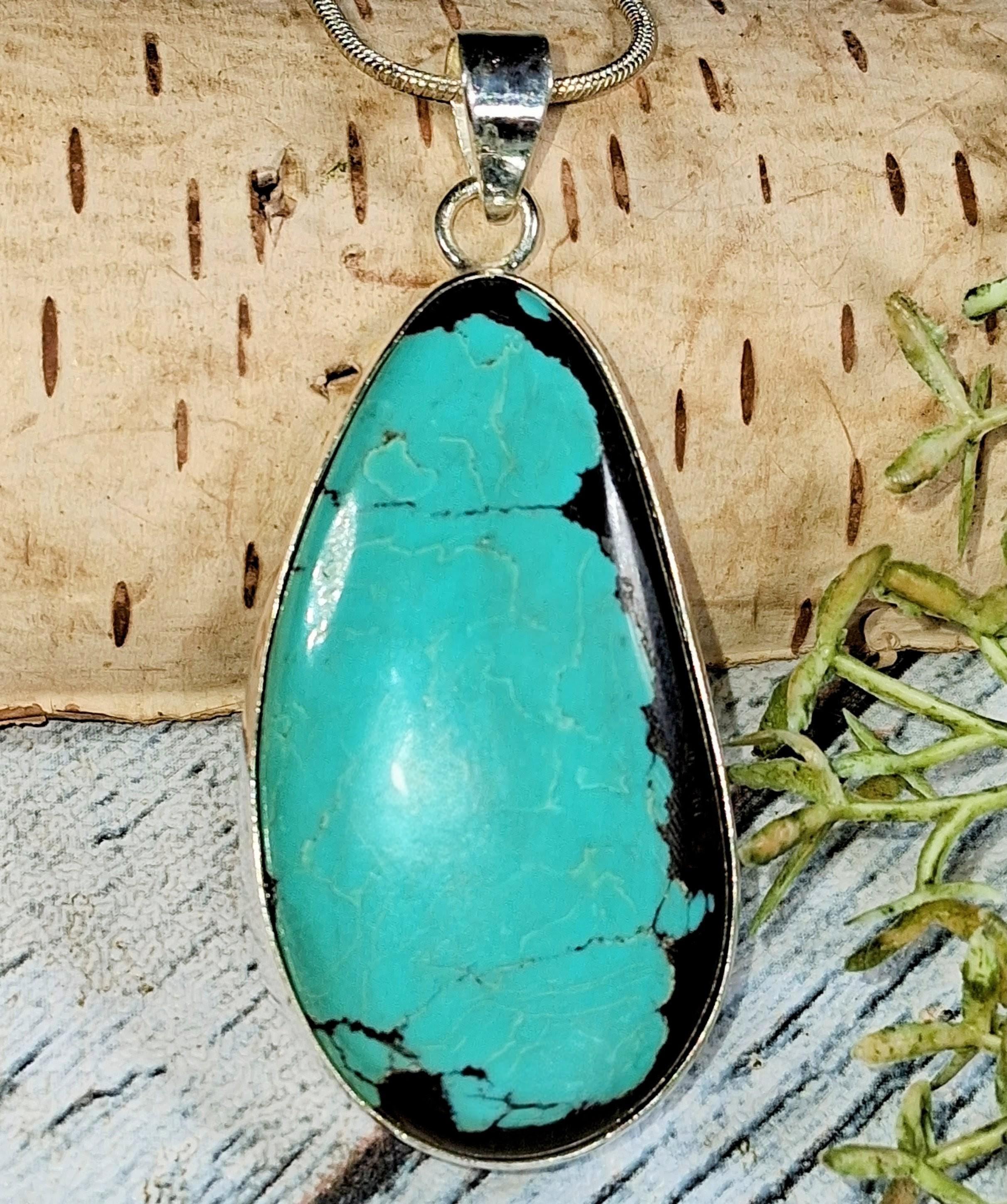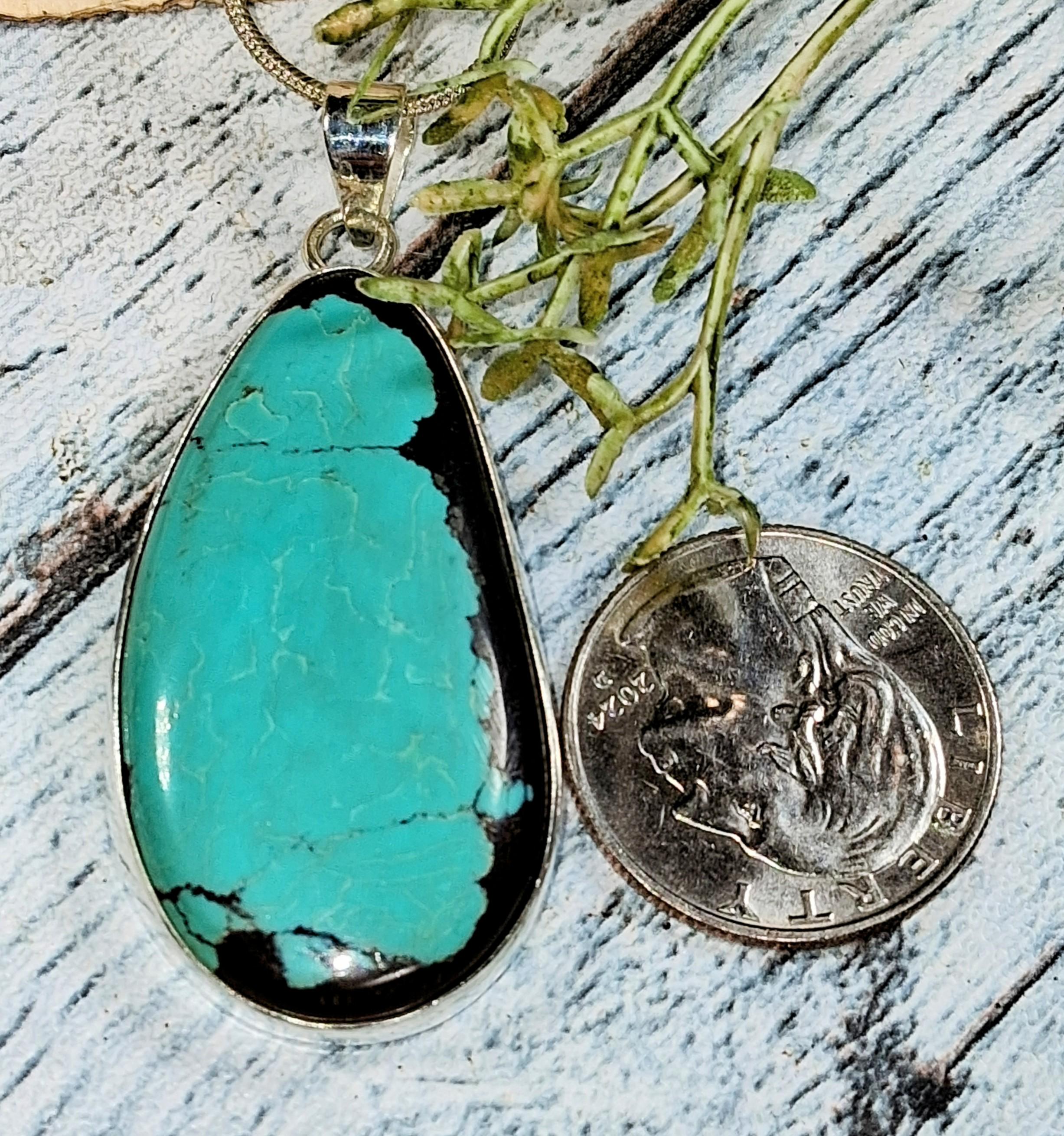 Natural High Grade Pear Arizona Turquoise Handmade .925 Sterling Silver Pendant measures 2 1/4" x 1" weighs 12.7 grams KB34. This is a handpicked natural stone, the exact one shown in picture. The sterling silver is .925 and stamped. Each piece is hand made by artisans in my shop. The quality of the stones and the silver workmanship is impressive. Please look at other items in my store. I sell ready-made jewelry with hand crafted silver work, pendants with a sterling silver bails and beautiful unique stones for jewelry wire wrapping and weaving. You will pay exact amount on shipping plus $1 for supplies and labor. All items are shipped within a couple of days after payment and are shipped USPS first class or international first class. Items are available for combined shipping, if invoice does not combine, please email me and I will combine for you. Average shipping will be $4 to 4.50 for USPS first class. International shipping is available for exact amount of shipping plus $1 for labor and supplies also. We also accept returns for refund or exchange. Thanks for viewing my store.