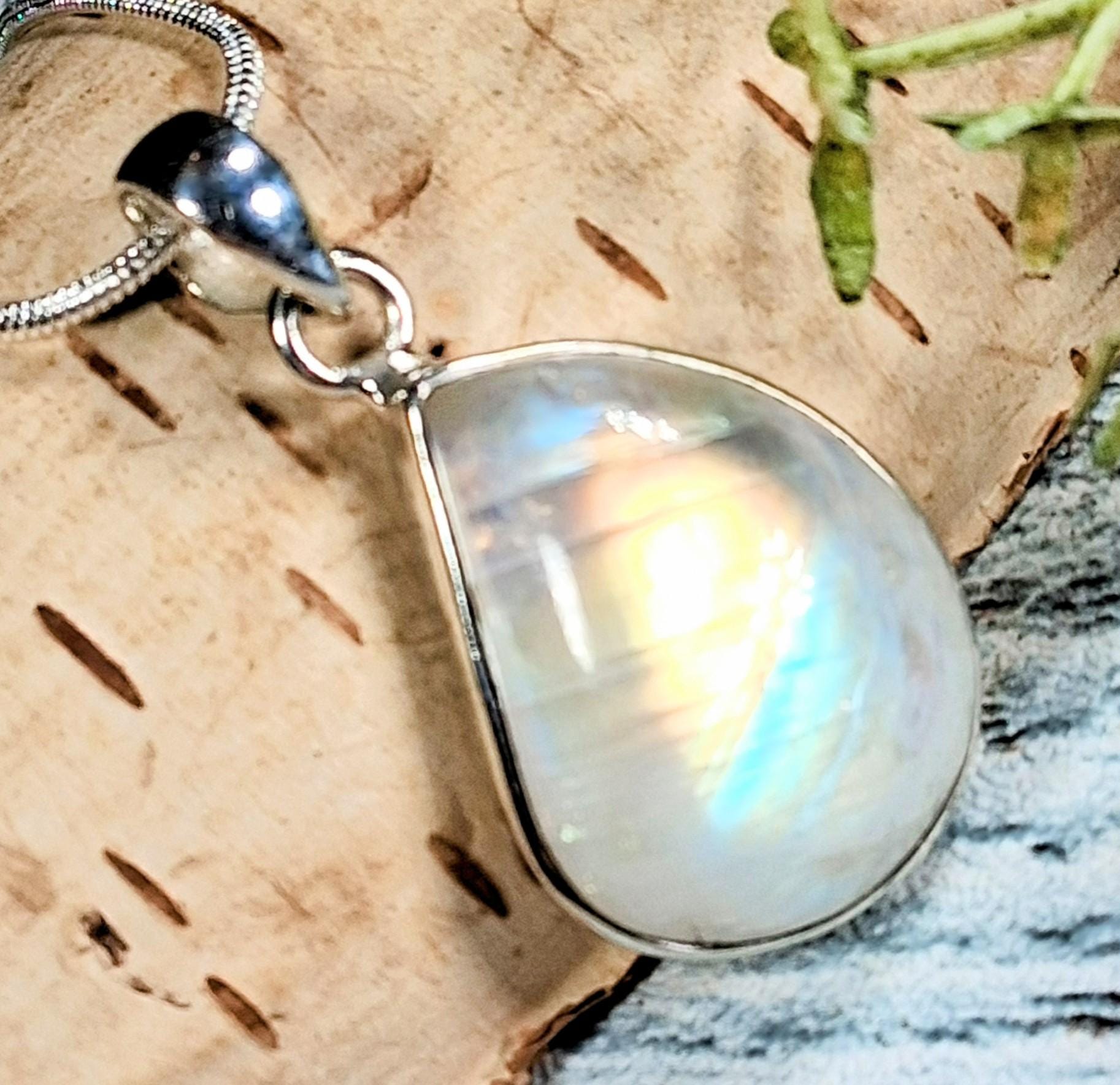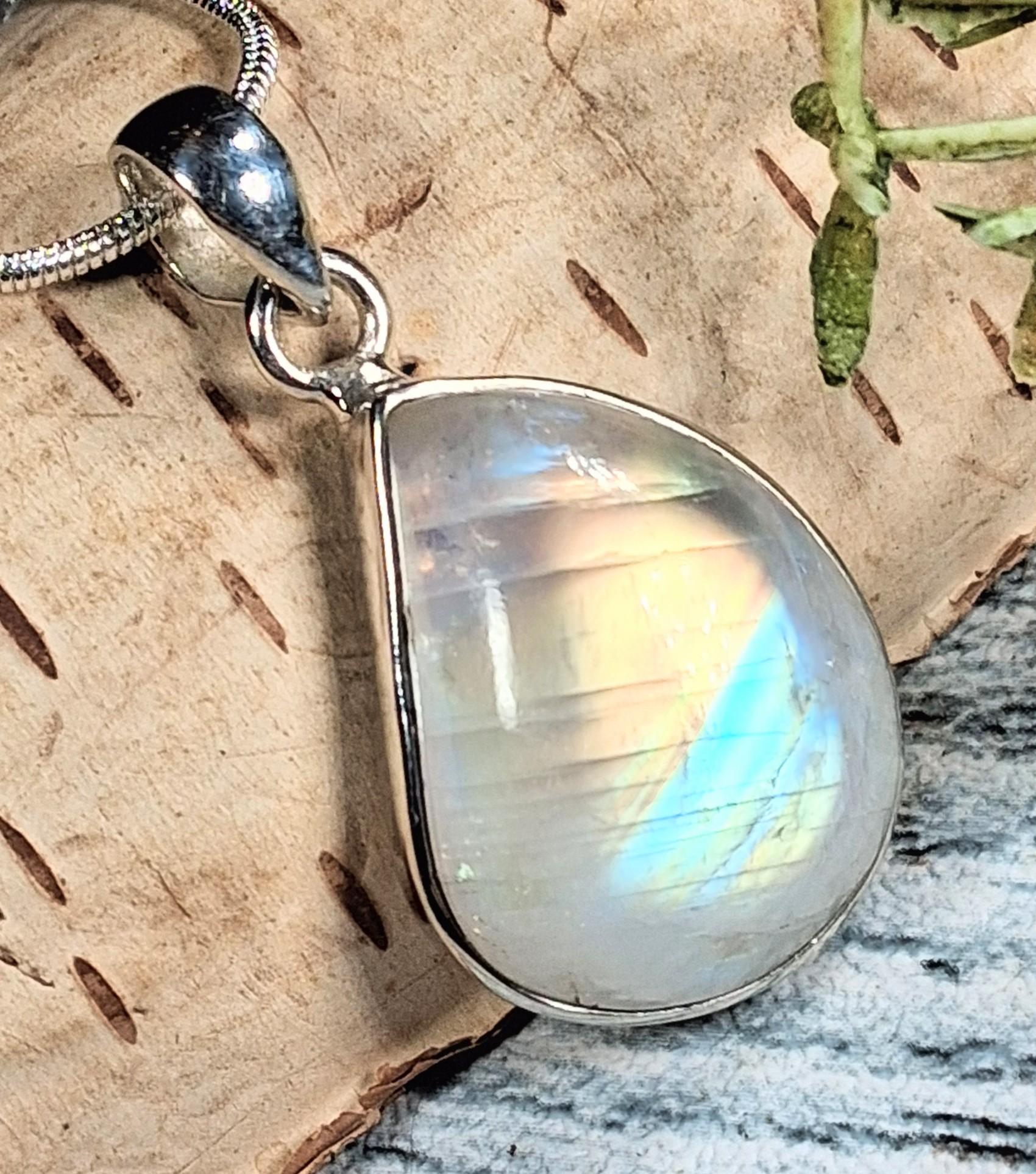Natural Handmade AAAA Grade Multi Flash Rainbow Moonstone Freeform .925 Sterling Silver Pendant 1 3/8" x 11/16" 6.4 Grams KC14. This is a handpicked natural stone, the exact one shown in picture. The sterling silver is .925 and stamped. Each piece is handmade by artisans in my shop. The quality of the stones and the silver workmanship is impressive. Please look at other items in my store. I sell ready made jewelry with hand crafted silver work, pendants with a sterling silver bails and beautiful unique stones for jewelry wire wrapping and weaving. You will pay exact amount on shipping plus $1 for supplies and labor. All items are shipped within a couple of days after payment and are shipped USPS first class or international first class. Items are available for combined shipping, if invoice does not combine please email me and I will combine for you. Average shipping will be $4 to 4.50 for USPS first class. International shipping is available for exact amount of shipping plus $1 for labor and supplies also. We also accept returns for refund or exchange. Thanks for viewing my store