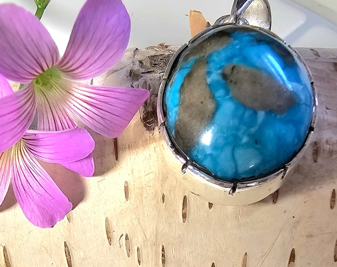 Handmade Larimar Sterling Silver Pendant: Dominican Boho Statement Jewelry